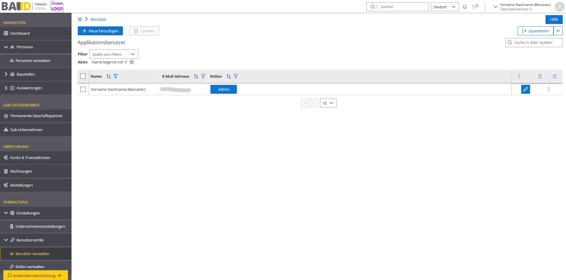 Hier werden alle Benutzer angezeigt, die bereits angelegt sind.
