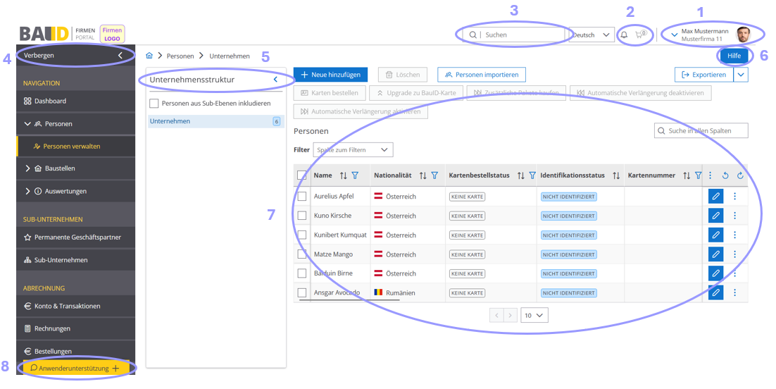 Abbildung 1: Seitenaufbau im BauID-Firmenportal