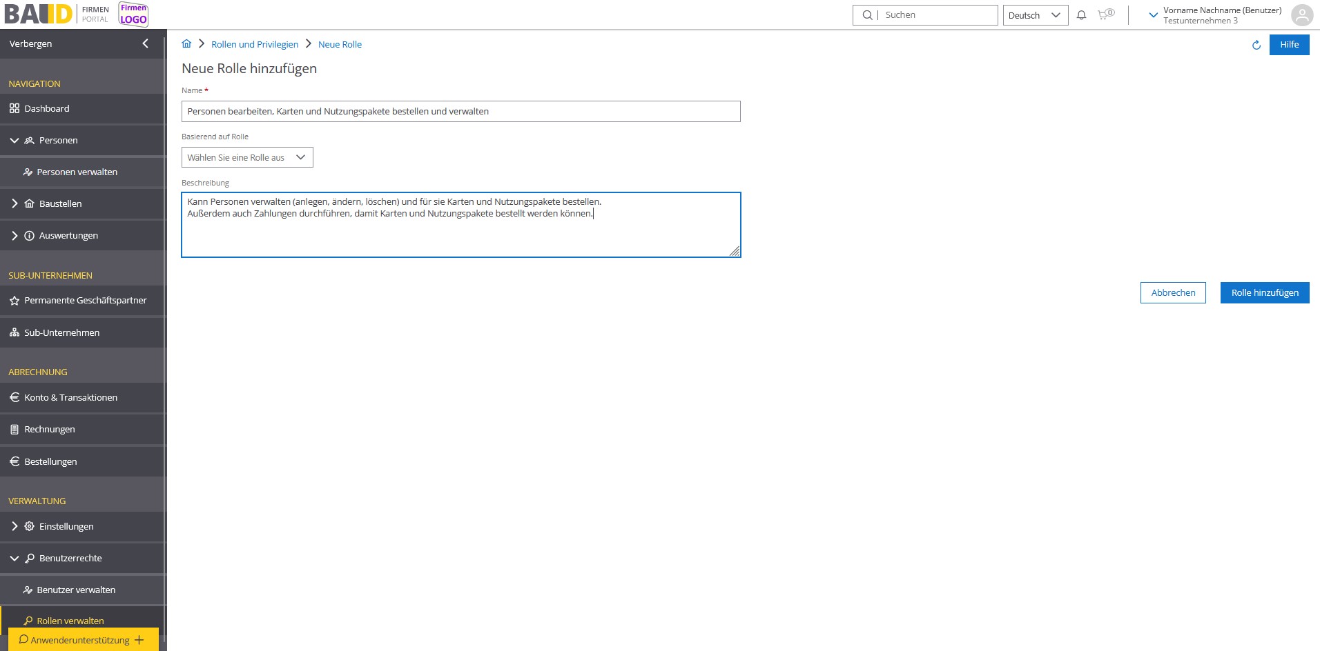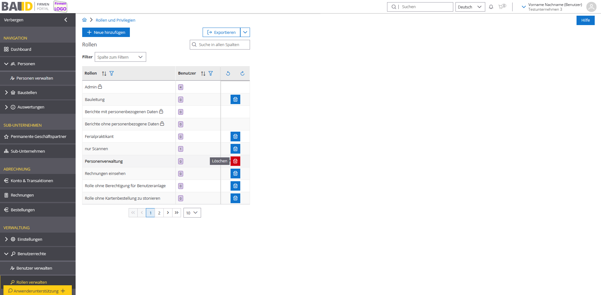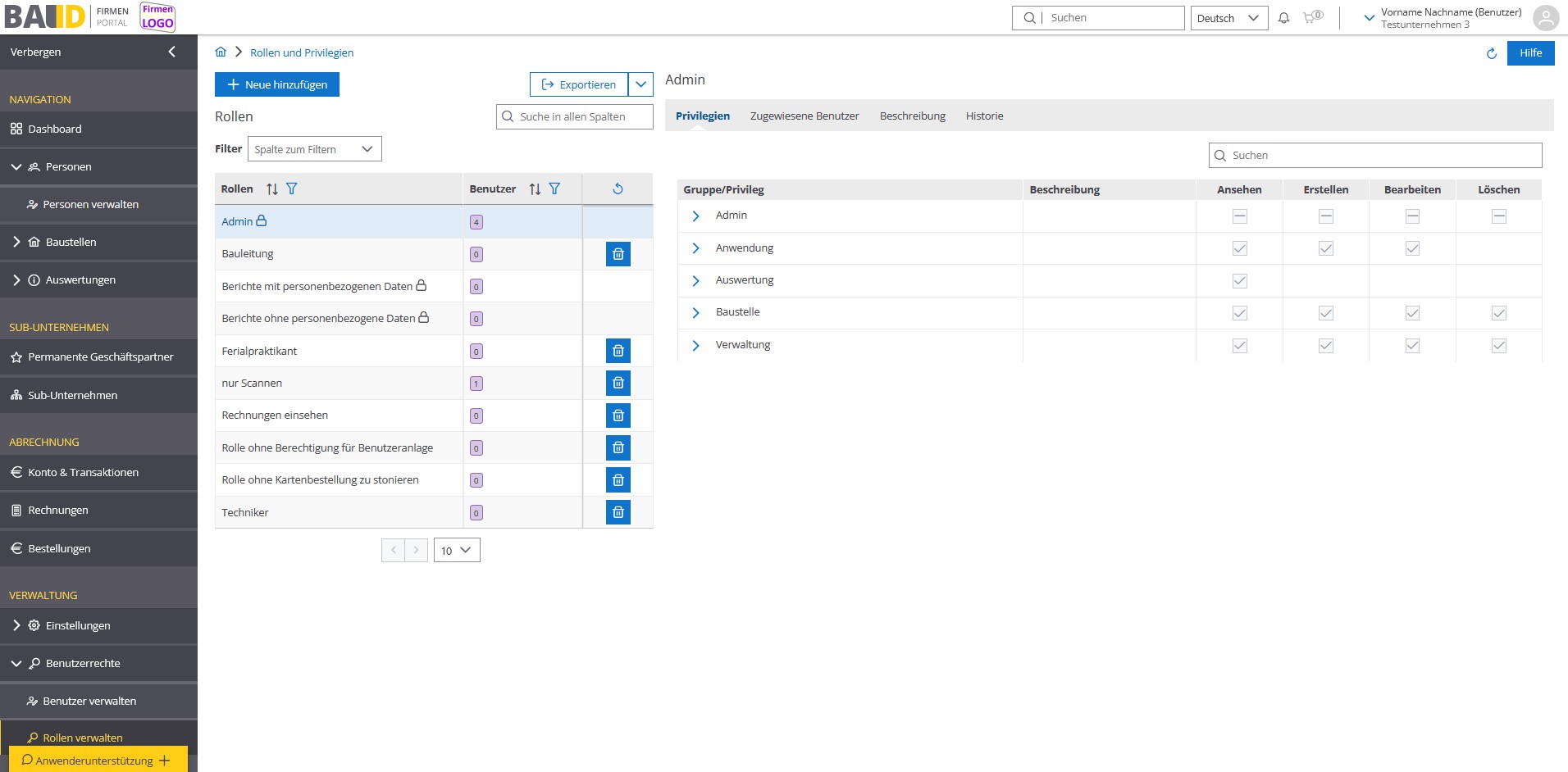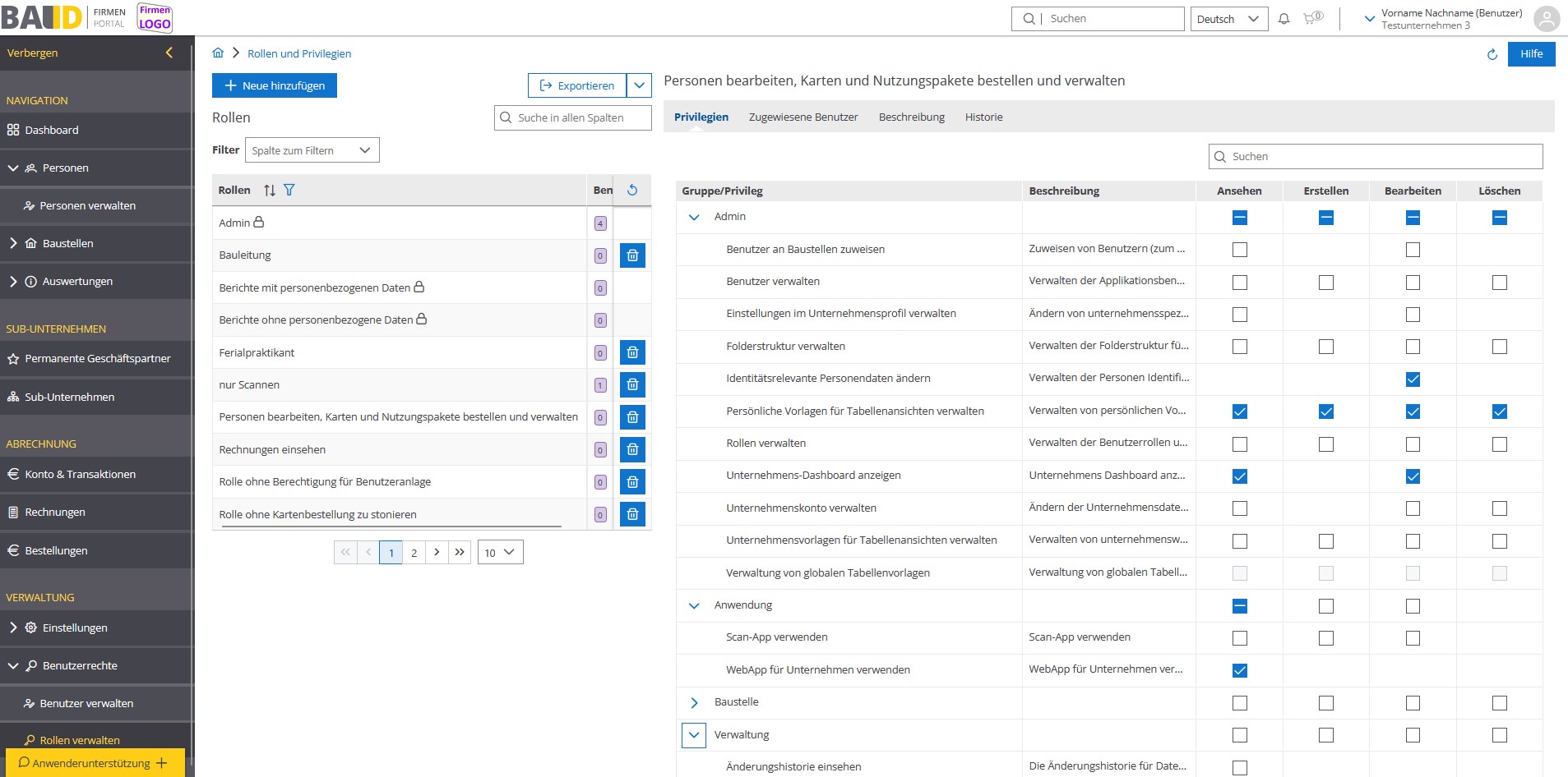 Zur Verwaltung Ihres Unternehmens und Ihrer Mitarbeiter:innen im BauID-System können Sie für Benutzer Rollen mit bestimmten Berechtigungen anlegen.